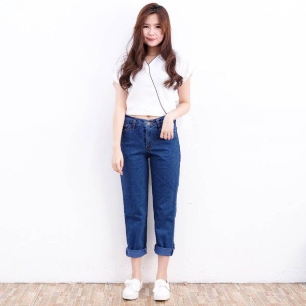 HOPYLOVY Celana Wanita Plain Boyfriend Jeans Shopee . Sumber Gambar : shopee.co.id